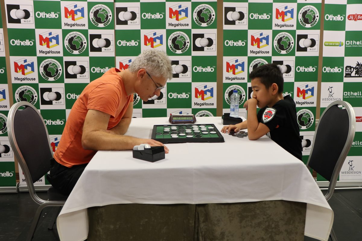 Le tournoi de blitz a réuni 28 joueurs pour la plupart compétiteurs la veille, comme le finaliste Akihiro Takahashi, ainsi que Nicky Van den Biggelaar, Imre Leader ou Arthur Juigner. D’autres joueurs se sont également invités à la fête, dont trois Français : Emmanuel Caspard, Emmanuel Lazard et moi-même. Il faut vivre un tel tournoi de blitz pour en comprendre à la fois l’euphorie et la frustration qu’il engendre. Ainsi, j’ai perdu au temps, au coup 59, contre Arthur Juigner (alors que j’avais déjà retourné tous mes pions) puis contre Imre Leader (mais cette fois, j’avais encore à retourner mes pions). Écoutant distraitement le rapide récit de ces mésaventures, Emmanuel Lazard a lâché comme une évidence : « le blitz, c’est toujours comme ça. »