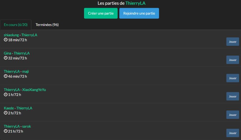 Ici vous ne pourrez pas jouer en « direct » mais aurez la possibilité de jouer des parties par correspondance. Très sympa.