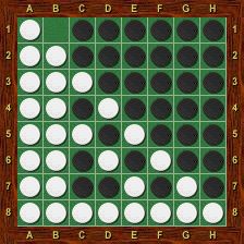 La partie est terminée lorsque aucun des deux joueurs ne peut plus jouer. Cela arrive généralement lorsque les 64 cases sont occupées. Mais il se peut qu’il reste des cases vides où personne ne peut plus jouer : par exemple lorsque tous les pions deviennent d’une même couleur après un retournement. Ou bien comme sur cette position (voir figure 10).