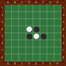 Au début de la partie, deux pions noirs sont placés en e4 et d5 et deux pions blancs sont placés en d4 et e5 (voir figure 1).