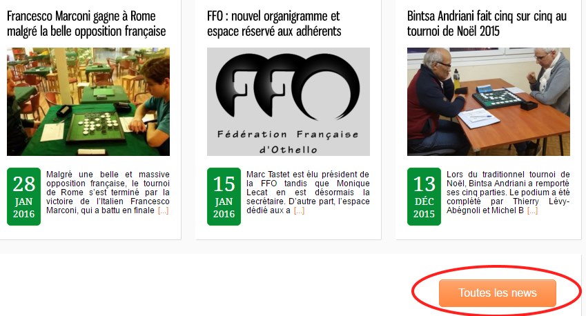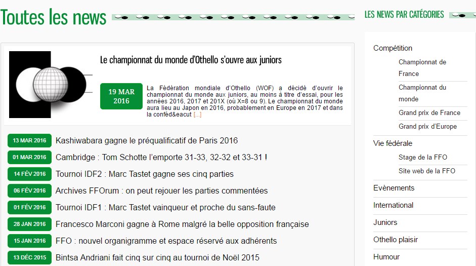 Les news de notre site Web sont désormais accessibles par catégories, ce qui permet par exemple de retrouver toutes celles qui concernent le championnat de France ou le stage de la FFO.