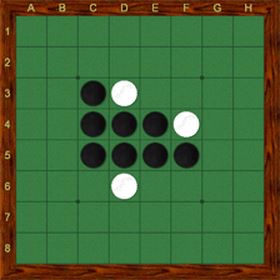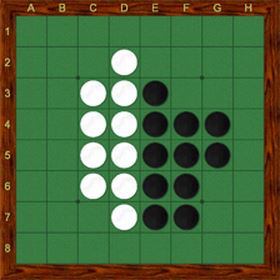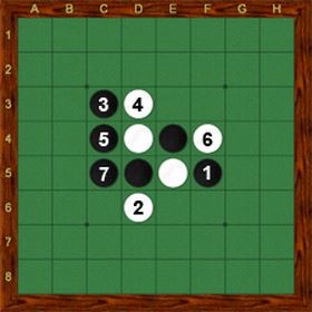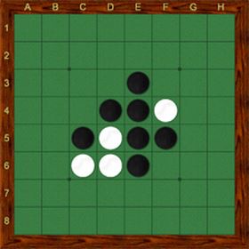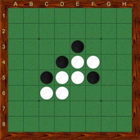 Remarquez comment Noir prend accès au coup tranquille en c4 avec 9.e6 et comment Blanc empêche alors son adversaire de jouer en c4 avec 10.d7, qui retourne le pion crucial en e6 (10.f7 est moins bon car il fabrique un long mur sur la colonne f). Il y a en fait trois moyens de retirer un accès à une case : enlever le pion d’appel (comme 10.d7 ci-dessus, qui retourne e6), pourrir le coup, ou jouer carrément soi-même sur cette case. La position dictera le choix de la technique à utiliser. Par exemple, dans la position de la Rose ci-dessus, si Blanc avait voulu retirer le coup Noir en c4 en y jouant lui-même au coup 10, Blanc aurait du retourner trois pions dans trois directions différentes (ce qui est contraire au principe d’économie) et Noir aurait de plus obtenu un nouveau coup tranquille en c3 : cela montre que cela aurait été un très mauvais choix. En fait, certains joueurs pensent que jouer à la place de son adversaire sur une case pour l’empêcher d’y jouer est souvent la moins bonne manière de s’y prendre (et devrait être réservée aux cas désespérés) puisque l’objectif premier est de réduire la mobilité adverse en augmentant la sienne en se gardant des coups tranquille : cela implique une stratégie d’ouverture agressive.