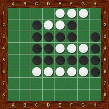 Noir joue d1 et attaque le bord faible de Blanc. Si Blanc ne répond pas c1, Noir prend le coin h1 au prochain coup. Malheureusement, si Blanc répond c1, il doit retourner toute la colonne c et toute la frontière devient blanche. Il ne reste plus à Noir qu’à jouer un coup tranquille en g3 pour que Blanc soit obligé de lui donner le coin h1 : il n’a que deux coups légaux, g2 et h2.