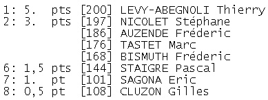 Thierry a donc gagné le tournoi en faisant carton plein. Il avait déjà remporté d’autres tournois IDF mais avec seulement quatre victoires sur cinq, sans jamais finir seul en tête.