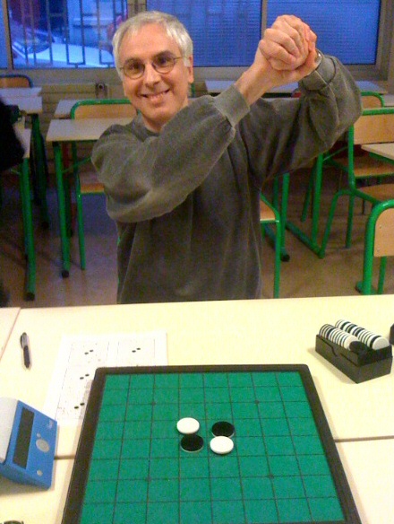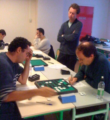 Mais la vedette a été volée par Thierry Lévy-Abégnoli, qui a successivement battu Marc Tastet, Stéphane Nicolet, Frédéric Bismuth, Frédéric Auzende et Pascal Staigre. Etonnament, la partie contre ce dernier fut très proche du niveau d’un match entre deux programmes, à l’exception de deux coups successifs très moyens, vers le coup 40, qui se sont compensés. Le résultat final (34-30) fut d’ailleurs serré.