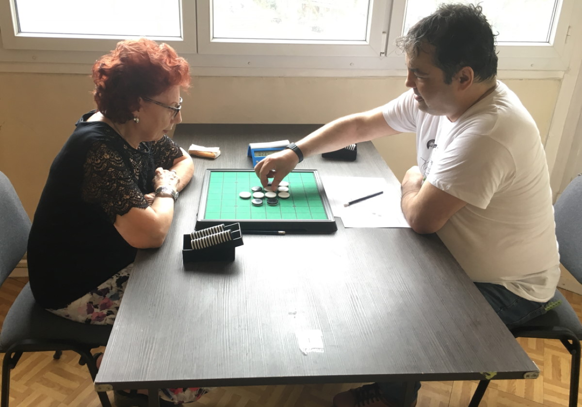 Le dimanche 22 septembre dernier s’est déroulé à Paris un tournoi de catégorie C, c’est-à-dire ouvert à tous sauf aux Grands-Maîtres, Maîtres et joueurs dont le classement mondial excède 1800 points. Neuf joueurs y ont participé dont trois faisaient leurs débuts en compétition : les féminines Dominique Robert et Yolande Rousselle, ainsi que le jeune Théo Katsianakos-Rebours, 17 ans, qui avait rencontré la FFO sur le stand de Japan Expo en juillet dernier.